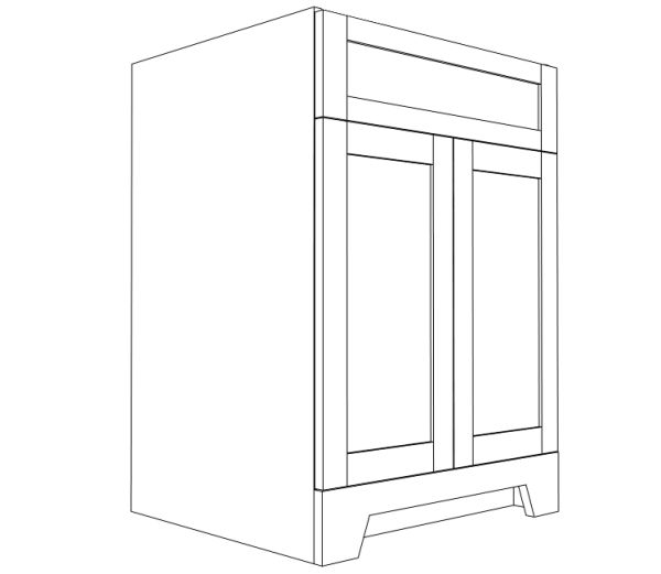 Bathroom single sink vanity. W: 24", H: 34", D: 21"